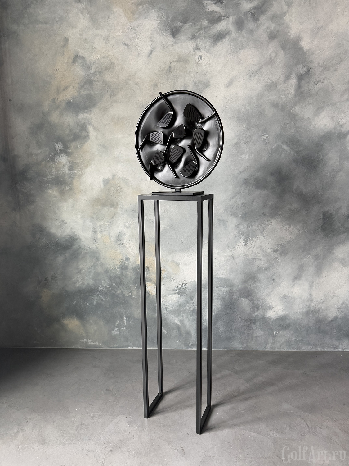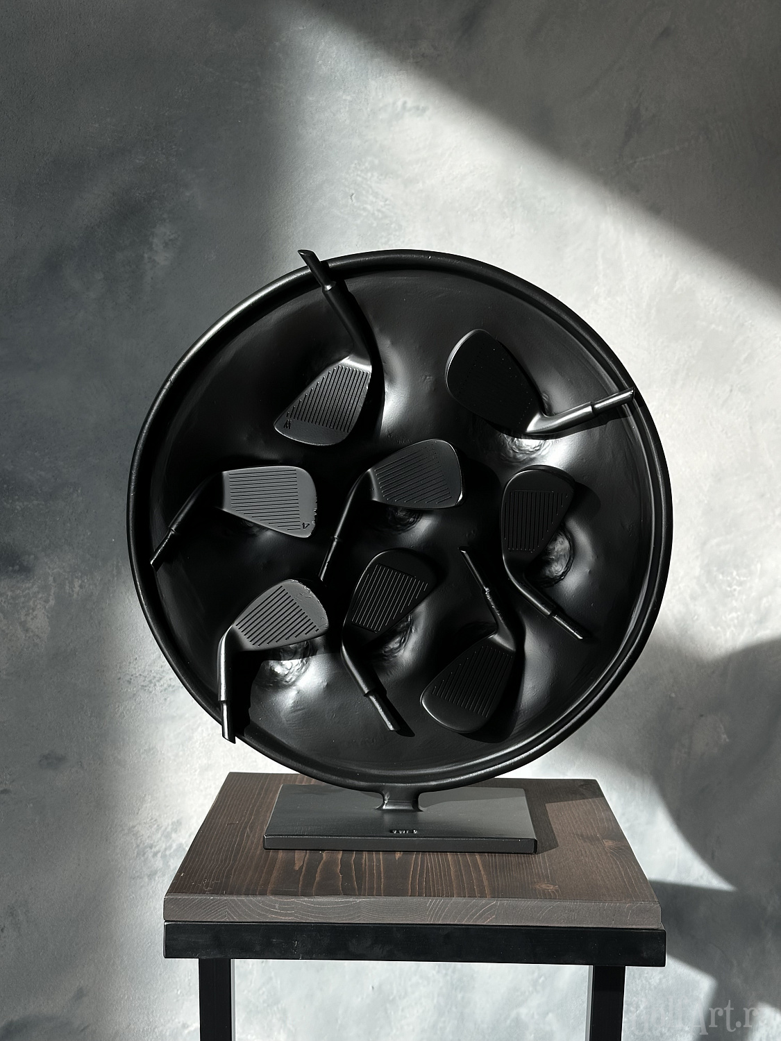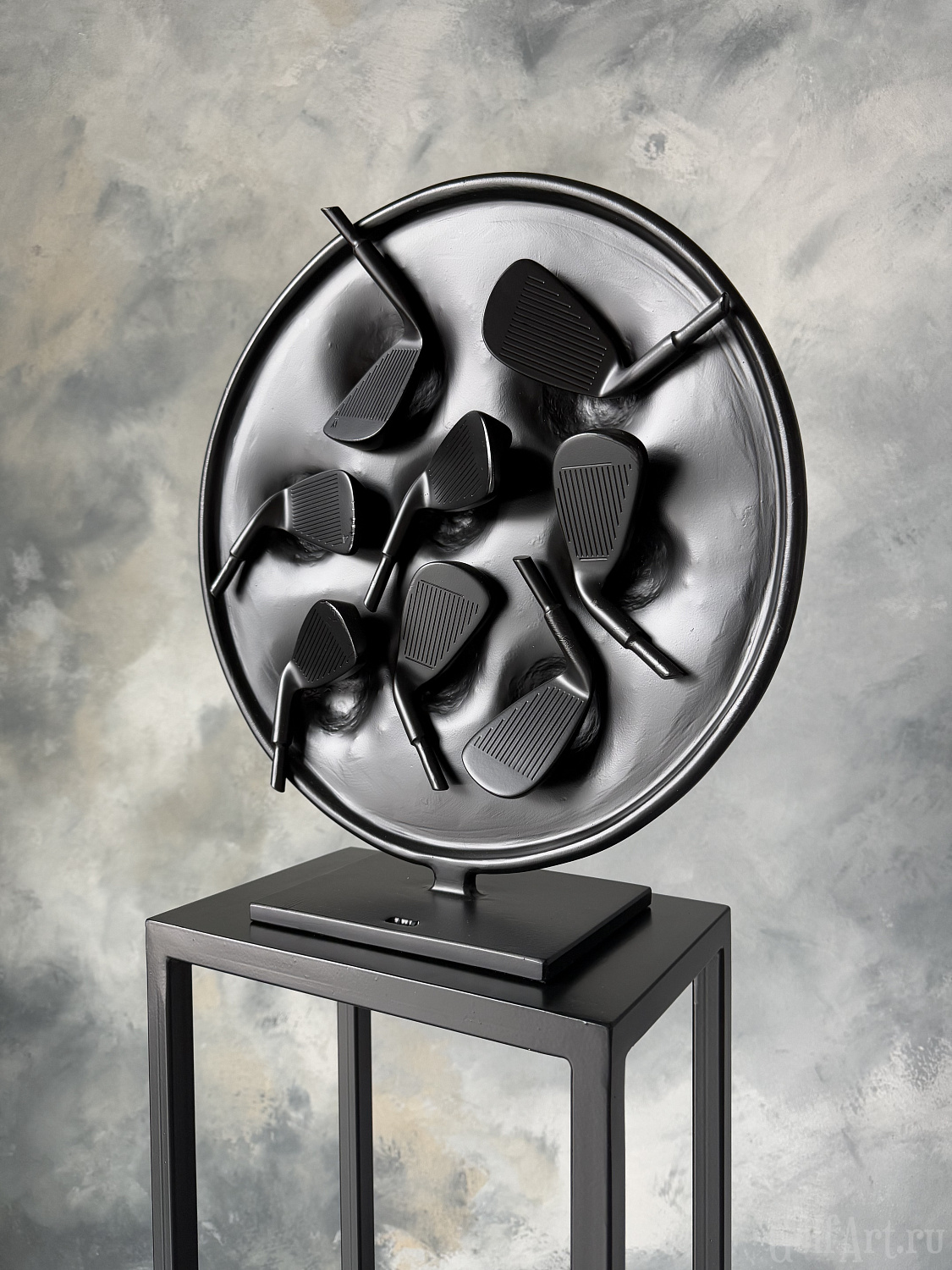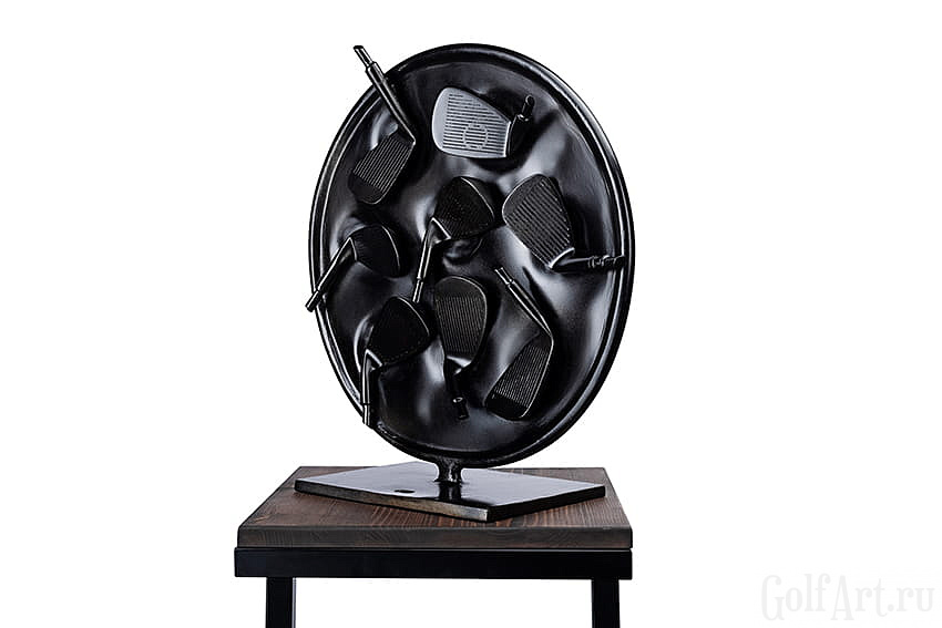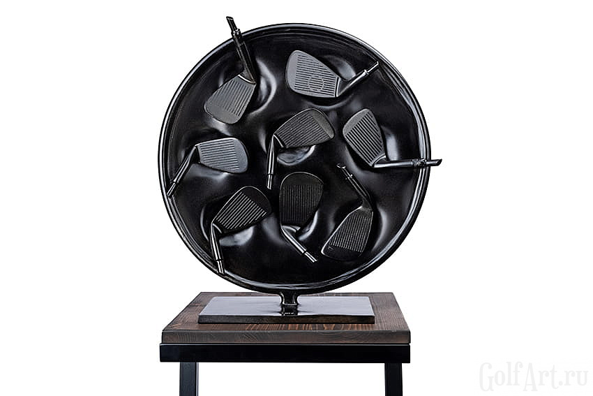 Арт объект представляет собой символическое воплощение страсти и преданности к гольфу. Черный круг символизирует единство и цикличность жизни, а расположенные в нем клюшки являются символом постоянства и ценности увлечения этой игрой. Каждая клюшка несет в себе историю игры, эмоции побед и поражений, что делает этот объект не просто украшением, а носителем уникальной энергии искусства. Он напоминает нам о важности преданности своим увлечениям и постоянства в достижении целей, а также призывает нас обрести внутренний покой и гармонию через любимое занятие и искусство