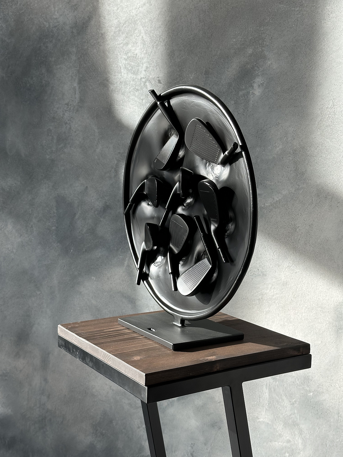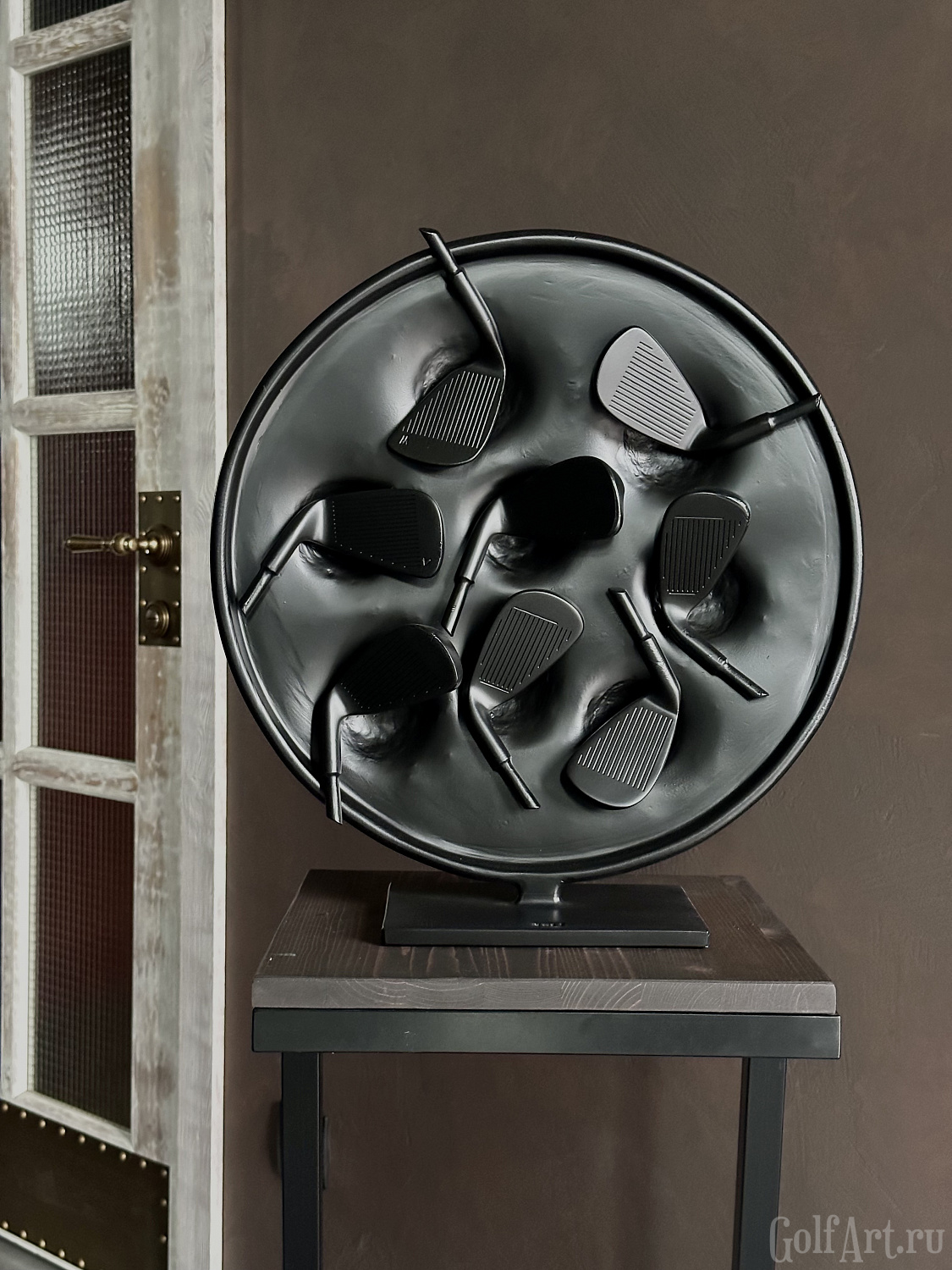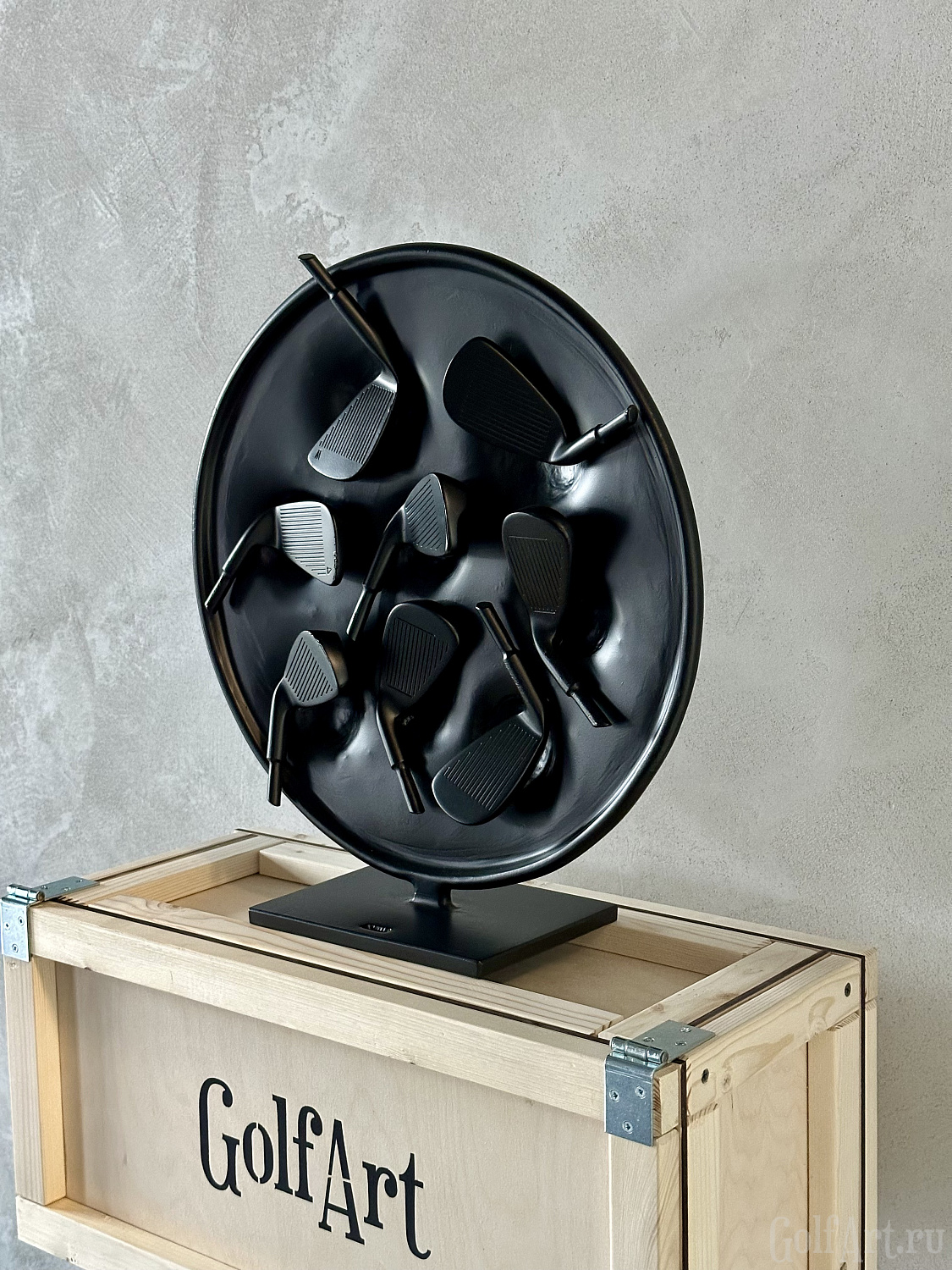 Арт объект представляет собой символическое воплощение страсти и преданности к гольфу. Черный круг символизирует единство и цикличность жизни, а расположенные в нем клюшки являются символом постоянства и ценности увлечения этой игрой. Каждая клюшка несет в себе историю игры, эмоции побед и поражений, что делает этот объект не просто украшением, а носителем уникальной энергии искусства. Он напоминает нам о важности преданности своим увлечениям и постоянства в достижении целей, а также призывает нас обрести внутренний покой и гармонию через любимое занятие и искусство