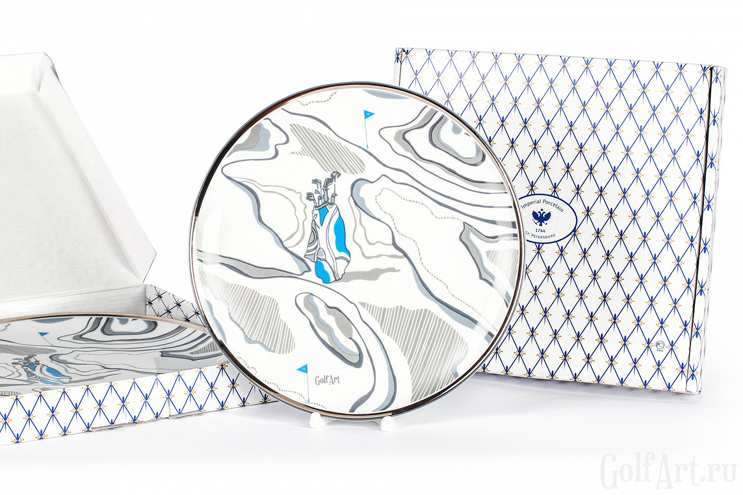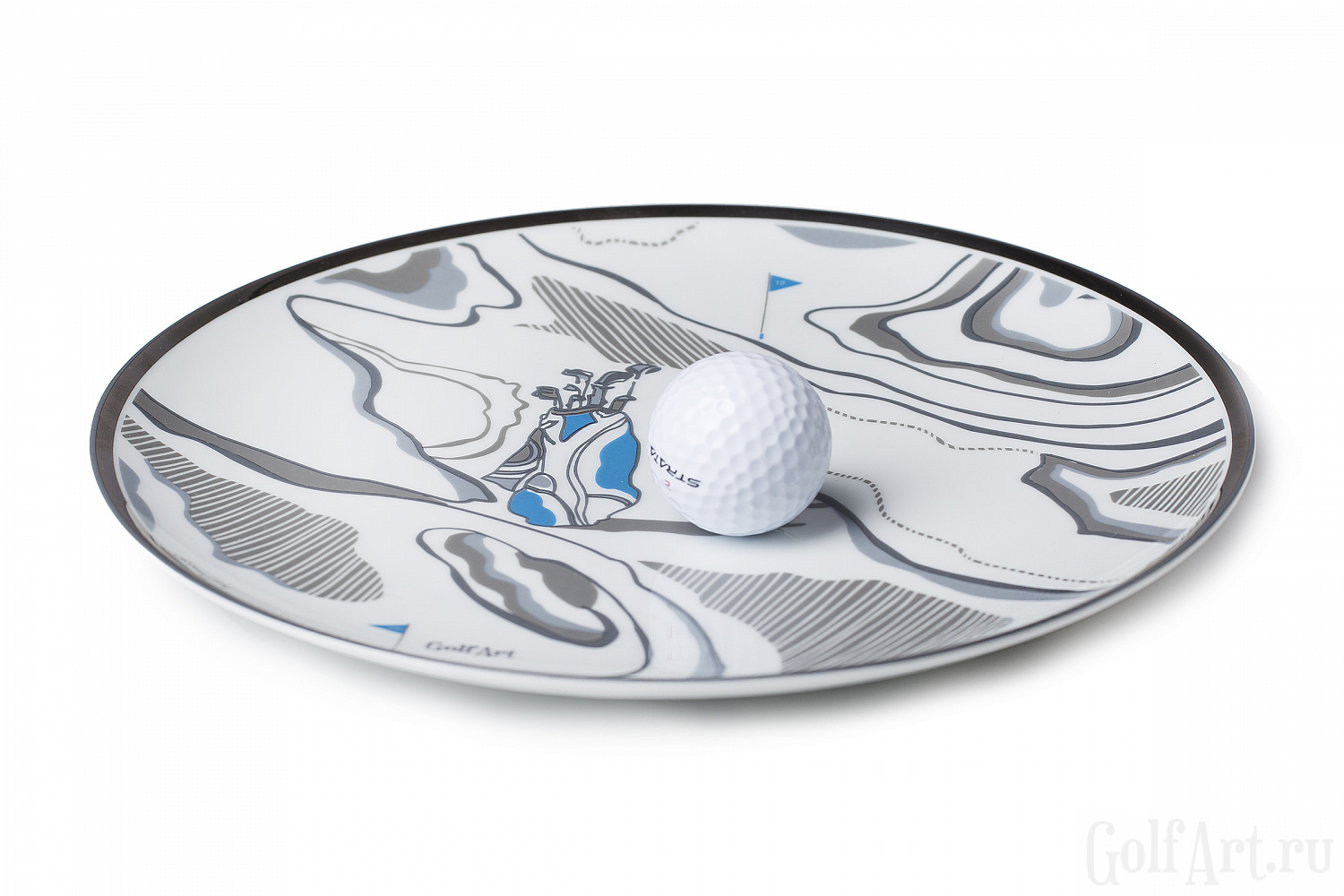 Императорский фарфоровый завод эксклюзивно для GolfArt! Стиль исполнения этой тарелки таков, что необходимо присмотреться, чтобы понять, что на ней изображено. Действительно «цепляющий» элемент интерьера!