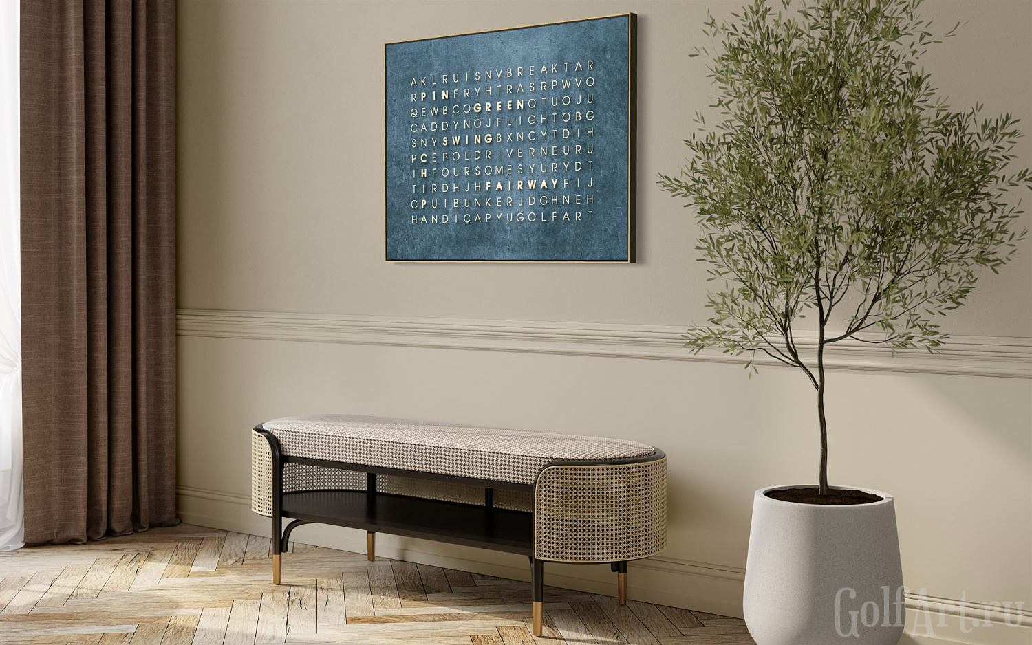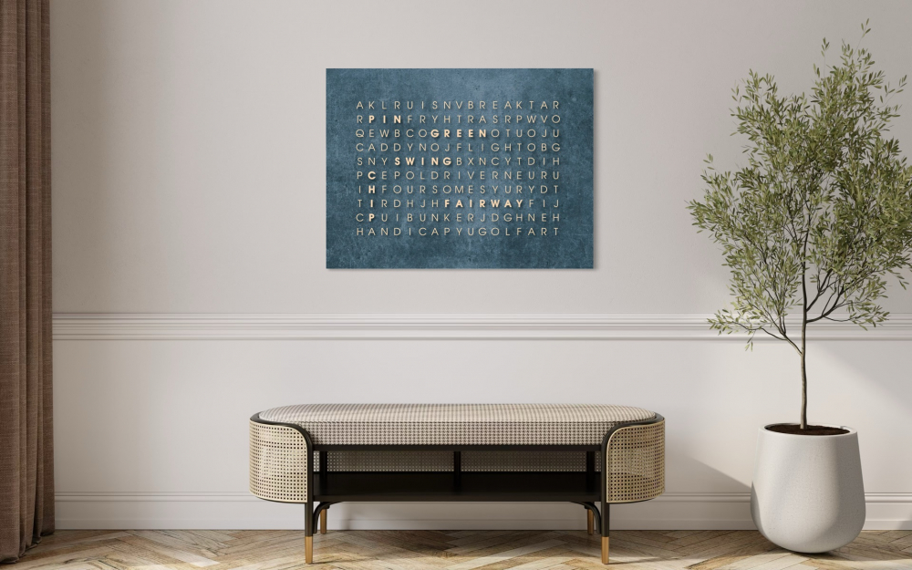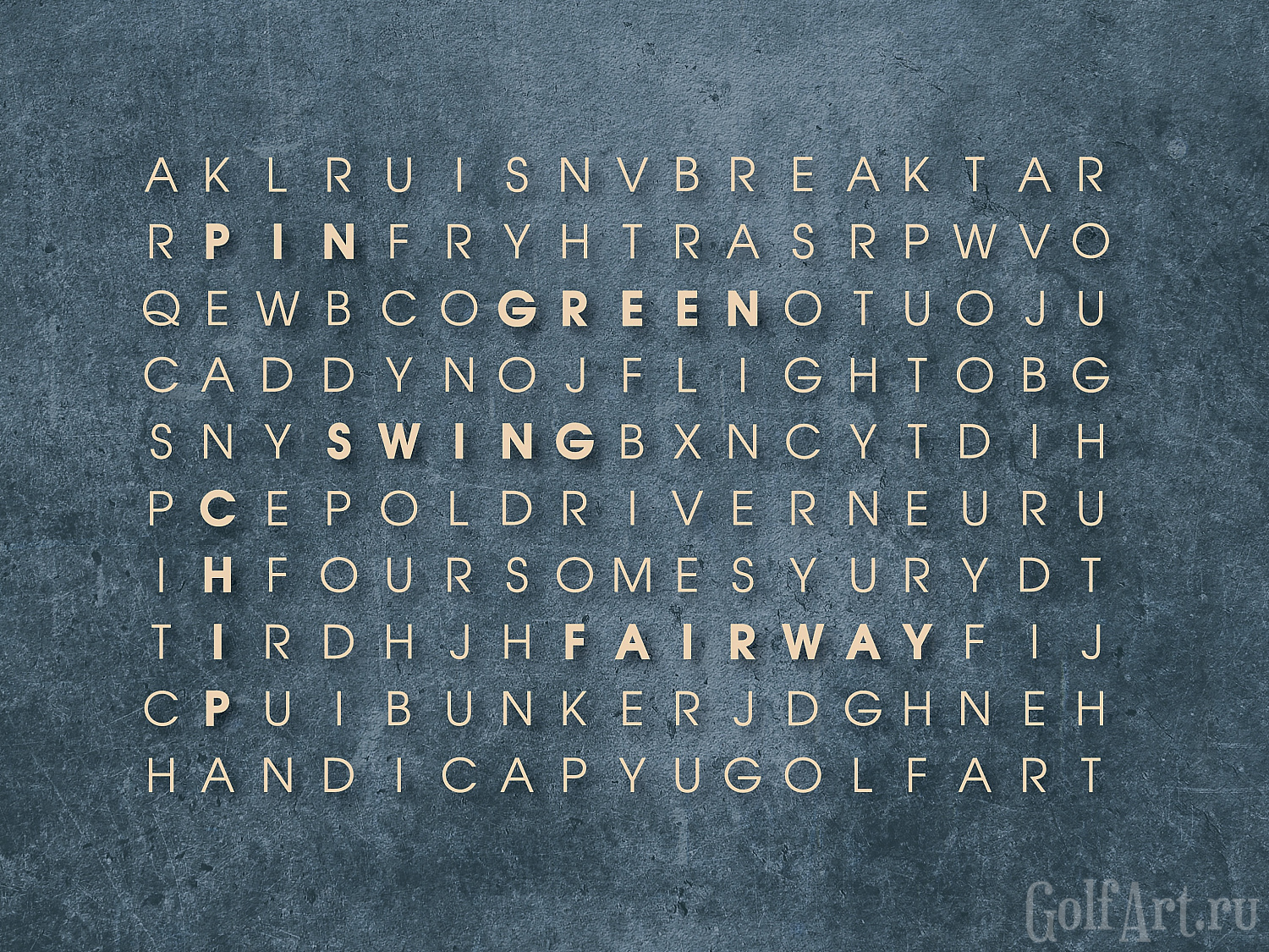 На первый взгляд - поле из букв, но внутри спрятаны 18 гольф терминов,