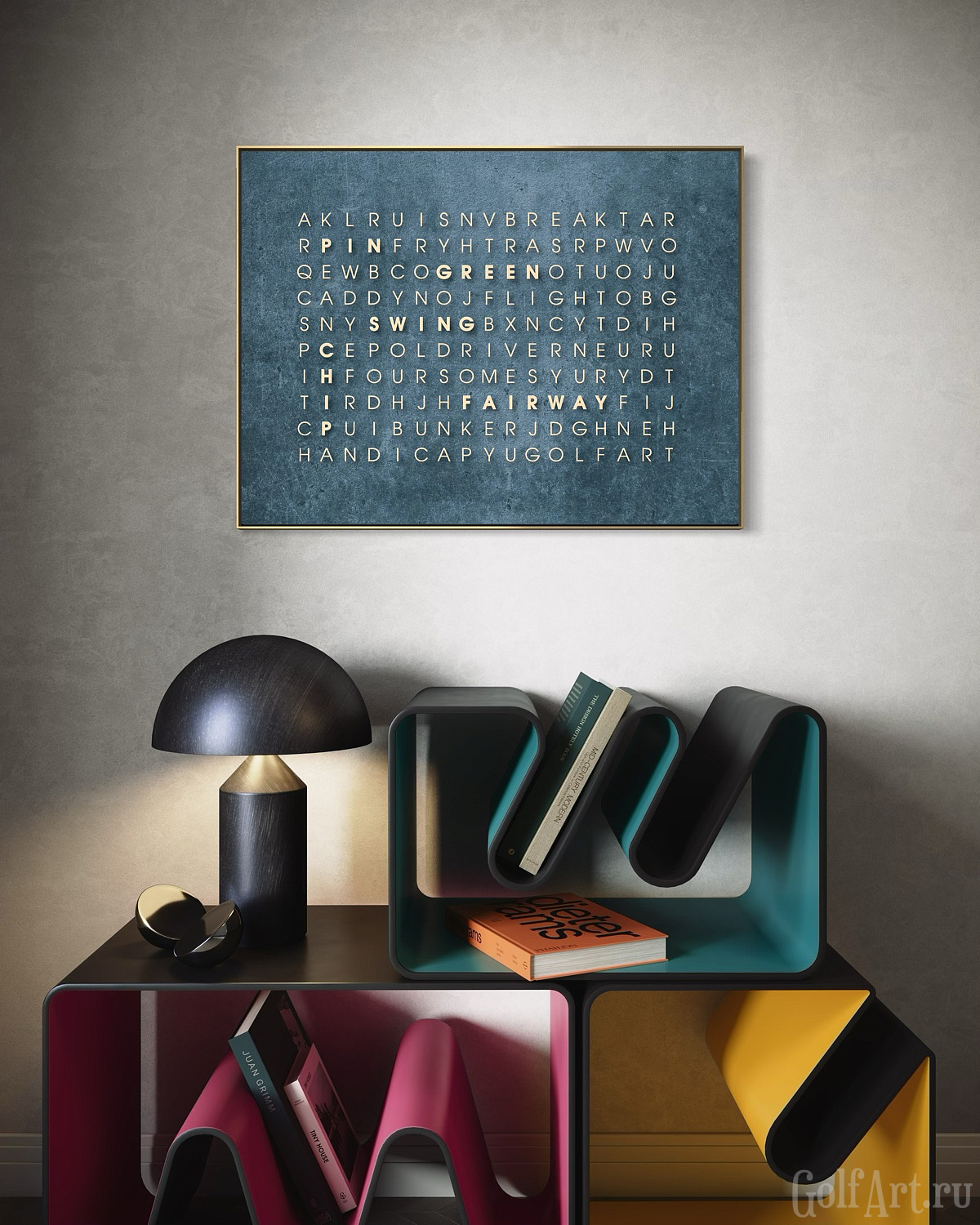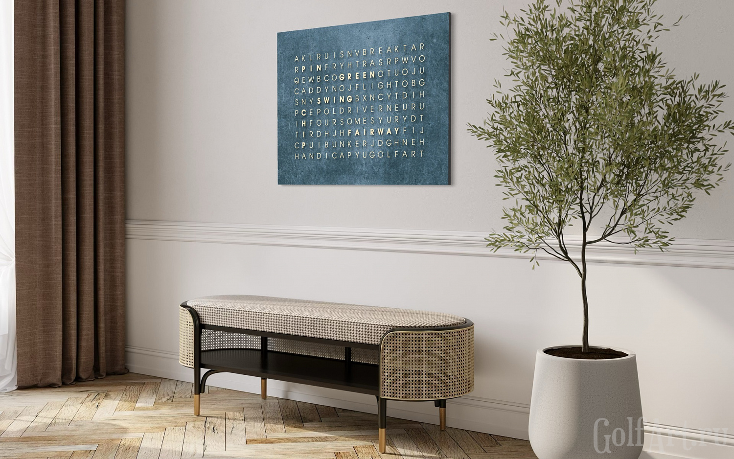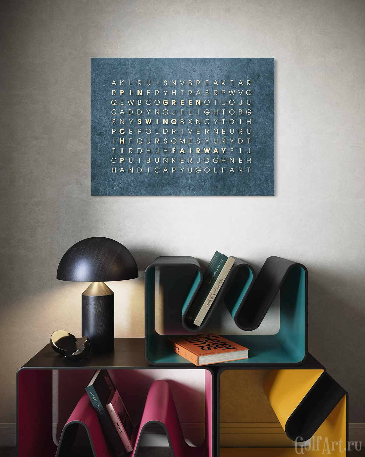 На первый взгляд - поле из букв, но внутри спрятаны 18 гольф терминов,