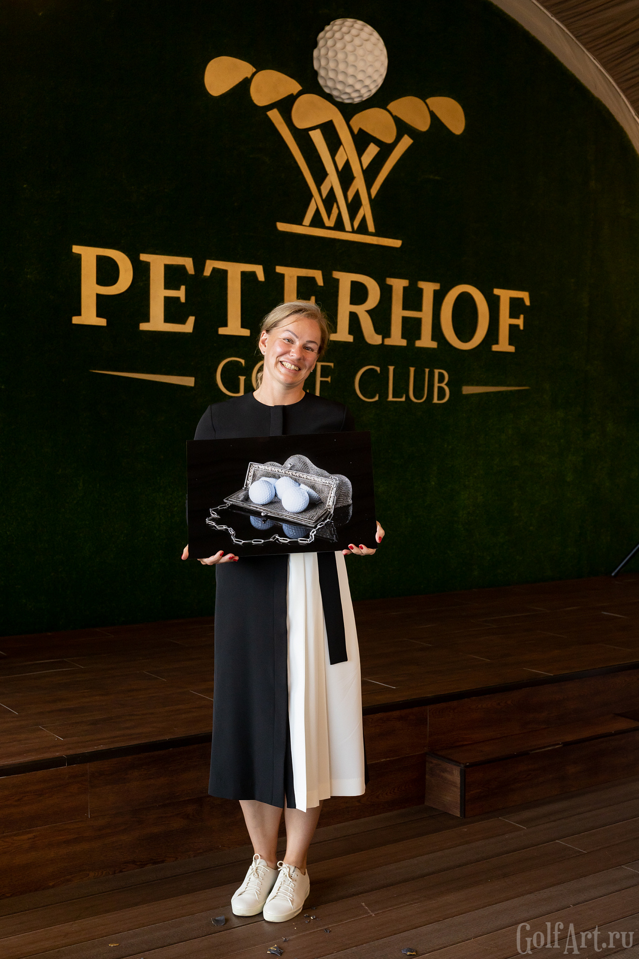 В PETERHOF GOLF CLUB победительнице в номинации «Леди отличница» вручили «натюрморт с винтажной французской сумочкой».